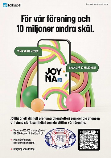 Vi i föreningen letar alltid efter sätt att stärka föreningens och lagens ekonomi för att på så sätt hålla nere kostnader och avgifter. Köp därför en prenumeration där du kan vinna finfina priser varje vecka och föreningen får 50 kr/månad per såld prenumeration. KLICKA HÄR FÖR ATT KOMMA TILL FOLKSPEL OCH JOYNA